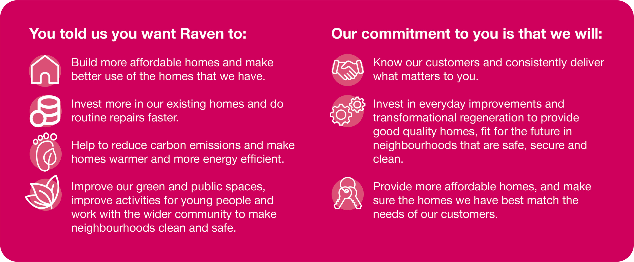 Every three years we create a strategy for the organisation. It’s a plan for how we can improve our homes and our services for you, our customers, and for the neighbourhoods where you live. Think of it as our commitments to you as our customers.